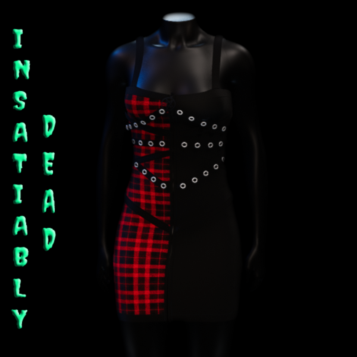 STRAPPED DRESS IN TARTAN PATTERN WITH BLACK PENTAGRAM ZIPPER [RED]. !!!SIMULATE GARMET AND ADJUST, THEN EXIT AND RE-ENTER SIMULATE GARMET TO RESET LOOPS IN PLACE IF FLIPPING OCCURS!!! CREATED IN MARVELOUS DESIGNER WITH AVATAR 2.0. ADJUSTMENT MAY BE REQUIRED! FITTING INSTRUCTIONS CAN BE FOUND BY GOING TO THE LINK BELOW. https://help.sansar.com/hc/en-us/articles/115005693363-Fitting-Marvelous-Designer-clothing-to-your-avatar PLEASE RATE AFTER BUYING! IF ANY ISSUES OCCUR PLEASE CONTACT TEAGAN BROKKEN FOR ASSISTANCE. THANK YOU! <3 <3 GET INSATIABLY DEAD <3