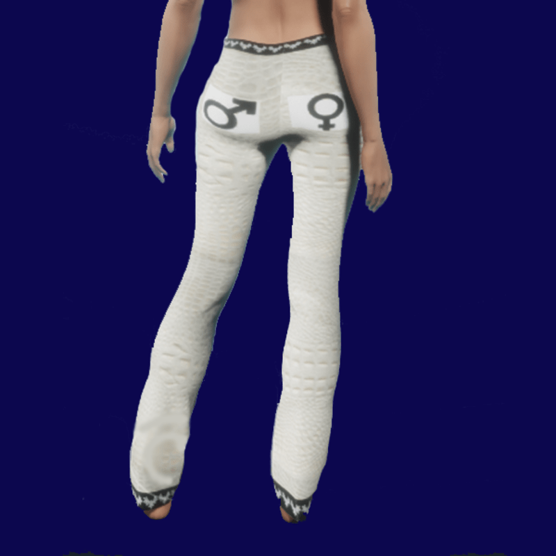 Jaz in White be bold and colorful a must addition to any wardrobe instead of pockets on the back we have the male and female symbols