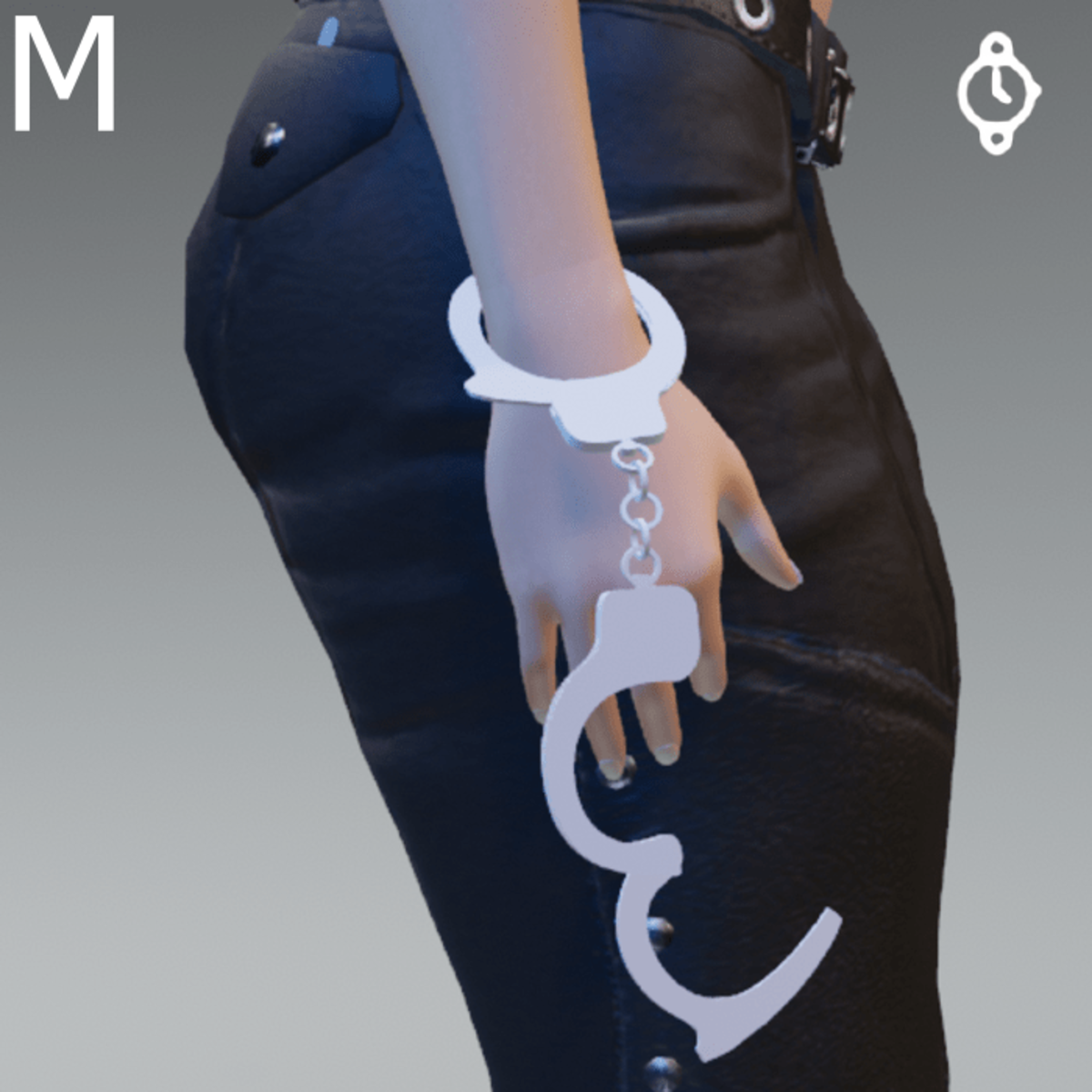 Handcuff bracelet, worn in the watch slot, for male avatars, Has transforms so can be adjusted