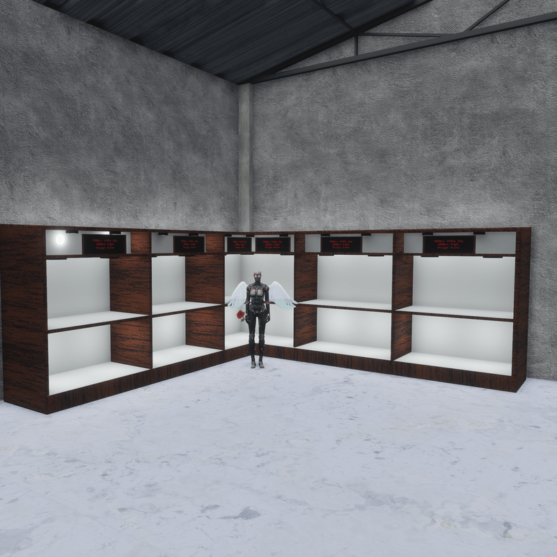 A large display unit with lighting and signs to display your fancy goods!! To see this in world visit my store https://atlas.sansar.com/experiences/timeymaster-3376/timey-master-s-store