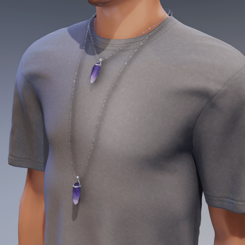 A double layered crystal pendant accessory. Located in the necklace slot/category. Fitted to male framed avatars or avatars with flatter chests. Should fit most chest sizes and over clothing with minor adjustments. The pendant is fully transformable: It can be scaled smaller or larger and positioned up, down, rotated or moved side to side. Contact "TheNick-1981" through Sansar or Sansar discord if you need re-rigging, a custom design or if there is a problem etc.