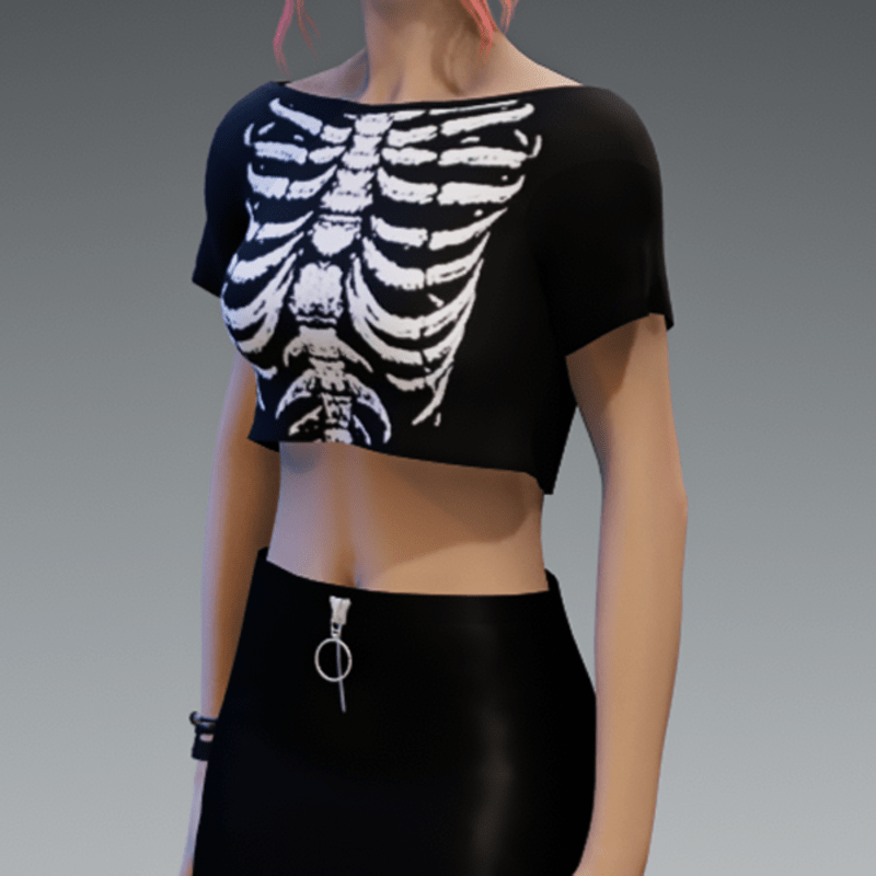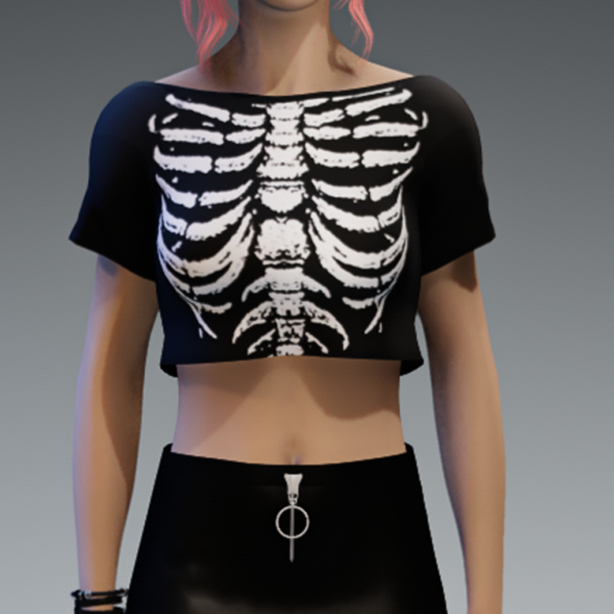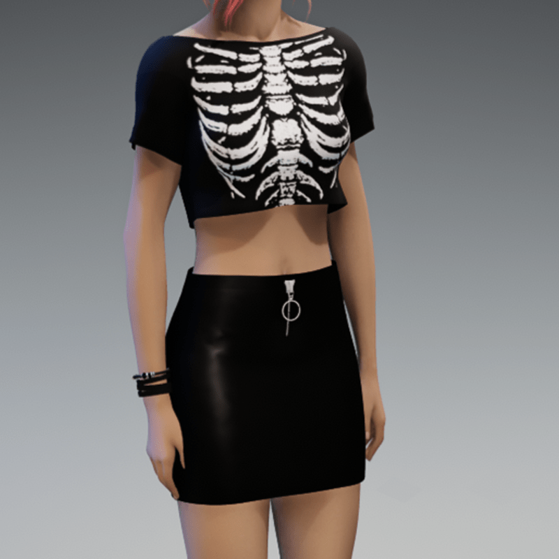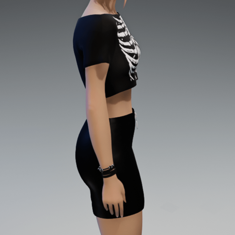 My basic short girlie with the skeleton print in black and white. If you like the skirt showing in the images, feel free to check my "Black Leather Skirt with Silver Zipper". Enjoy!