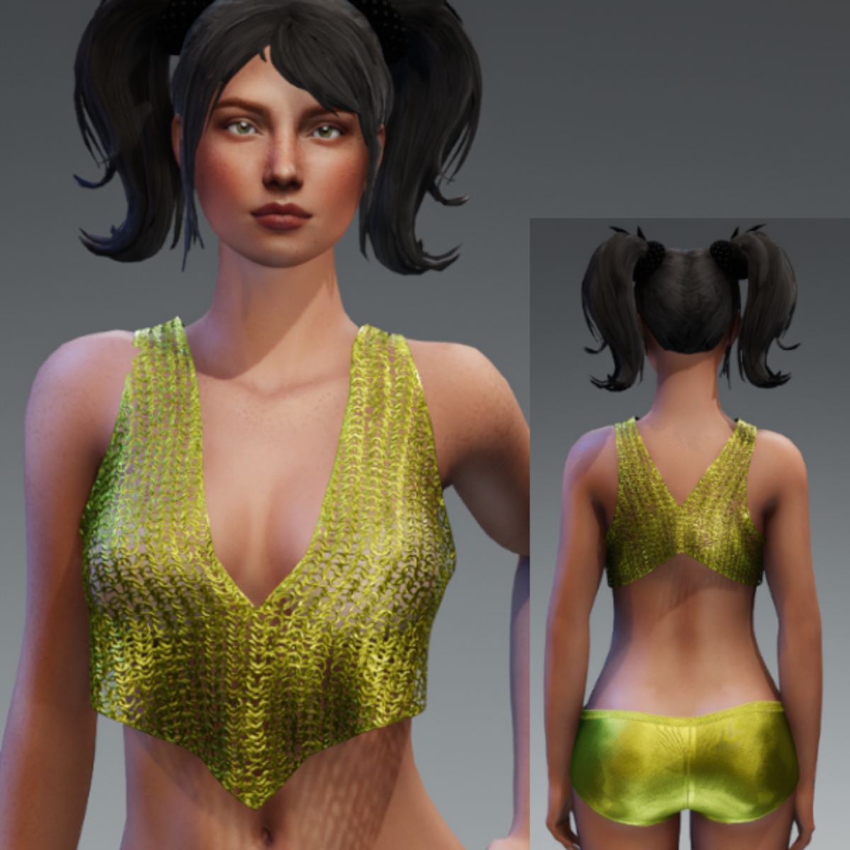V-Neck Chain Top. Check my store for the matching metallic shorts Get Demo Here: https://store.sansar.com/listings/b31df329-c3bb-46f3-b5ce-ddd245c6202e/v-neck--chain-top---demo Trying on the available Demo is the best way to assure your satisfaction with quality and fit. The lighting isn't the best in the lookbook and the shoulders seem to fit funny in the lookbook as well, so I recommend wearing the demo in world to see how it truly looks on you. Visit my inworld store experience to find discounted items that or not available on the marketplace and also look for miniature butterflies to find free mystery gifts! https://atlas.sansar.com/experiences/lonaleelancaster/lona Made in Marvelous Designer and can be adjusted to fit most avatars. Please try a demo to assure fit and satisfaction. To learn more about transforming and adjusting Marvelous Designer clothing visit this link: https://help.sansar.com/hc/en-us/articles/115005693363-Fitting-Marvelous-Designer-clothing-to-your-avatar#some-tips