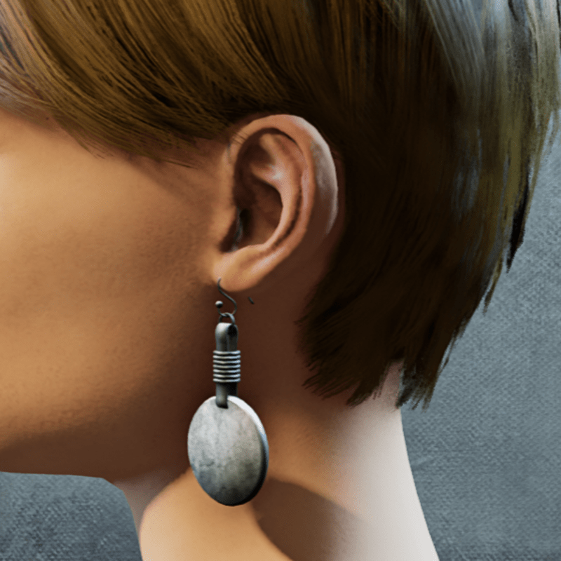 These were made for Avatar 1.0 but can be edited to fit both Avatar 2.0 via the Worn Items window. See screenshot. Disk earrings with hooks in Silver and stone. Original Mesh Cycles Baked Textures Normal Map