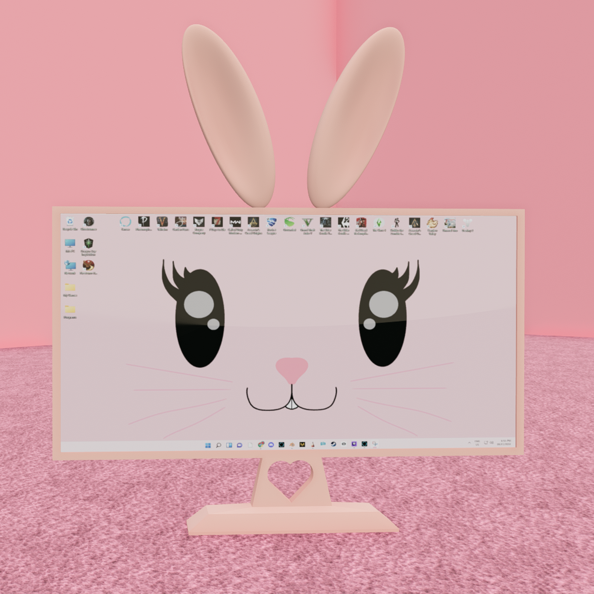 Kawaii bunny monitor for gamer girls. So cute and perfect enjoy! Has glowing screen. You can change colours and textures.