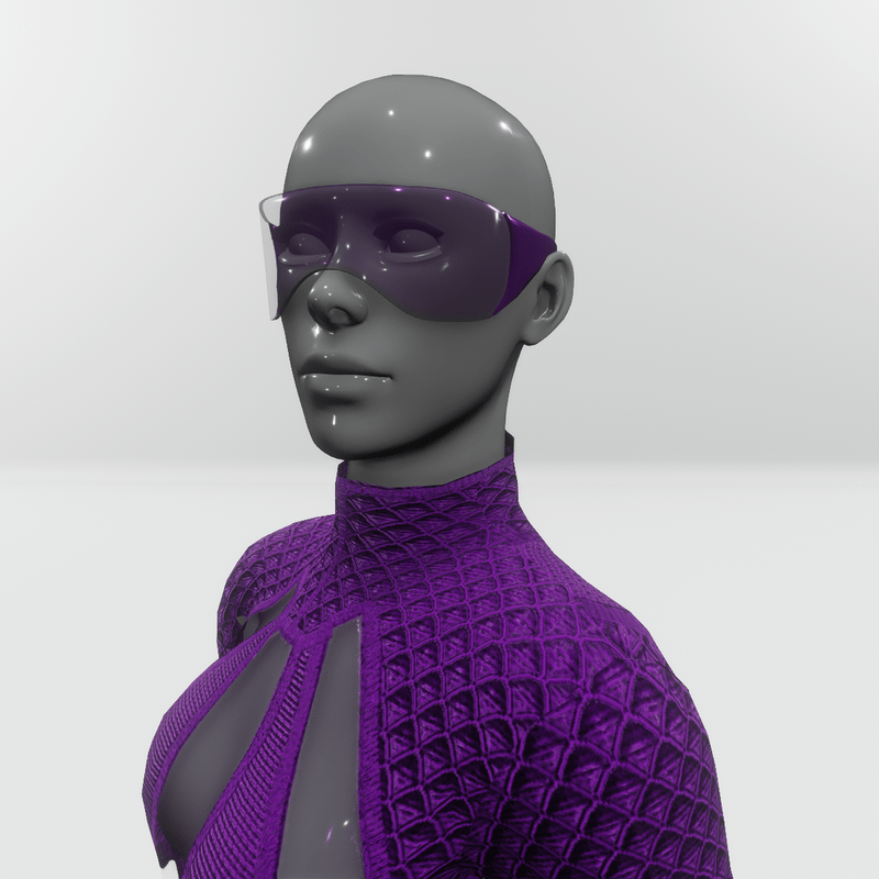 Futuristic female sunglasses, part of the "Baryt set" in purple color. Get the free demo item to check fit and style before purchasing here: https://store.sansar.com/listings/aca6bbb4-c1e2-45c3-9a6b-fda56605c4db/baryt-sunglasses---demo