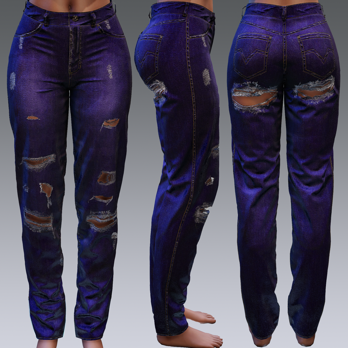 I updated my ripped jeans, since with simulation some part were fighting eachother. These jeans fits all human female avatars, but might be a bit lose for the skinny avatars, so do try out my demo to be sure!