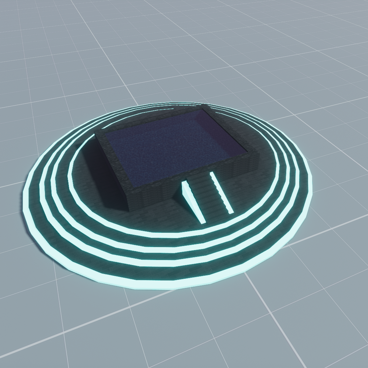 This pool is amazing! Has emissive where it matters, around the stairs, has a round effect stair collapse and pool water. Double sided transparent water with no collision for water but base is solid. Enjoy in cyber scenes :)