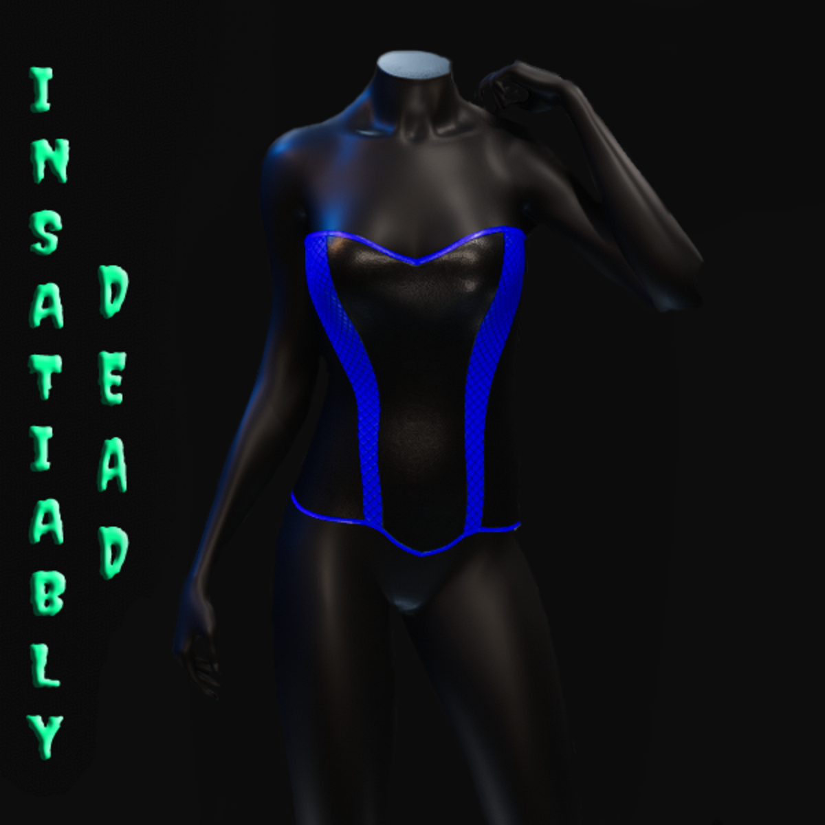 FISHNET CORSET [BLACK/BLUE]. CREATED IN MARVELOUS DESIGNER WITH AVATAR 2.0. ADJUSTMENT MAY BE REQUIRED! FITTING INSTRUCTIONS CAN BE FOUND BY GOING TO THE LINK BELOW. https://help.sansar.com/hc/en-us/articles/115005693363-Fitting-Marvelous-Designer-clothing-to-your-avatar PLEASE RATE AFTER BUYING! IF ANY ISSUES OCCUR PLEASE CONTACT TEAGAN BROKKEN FOR ASSISTANCE. THANK YOU! <3 <3 GET INSATIABLY DEAD <3