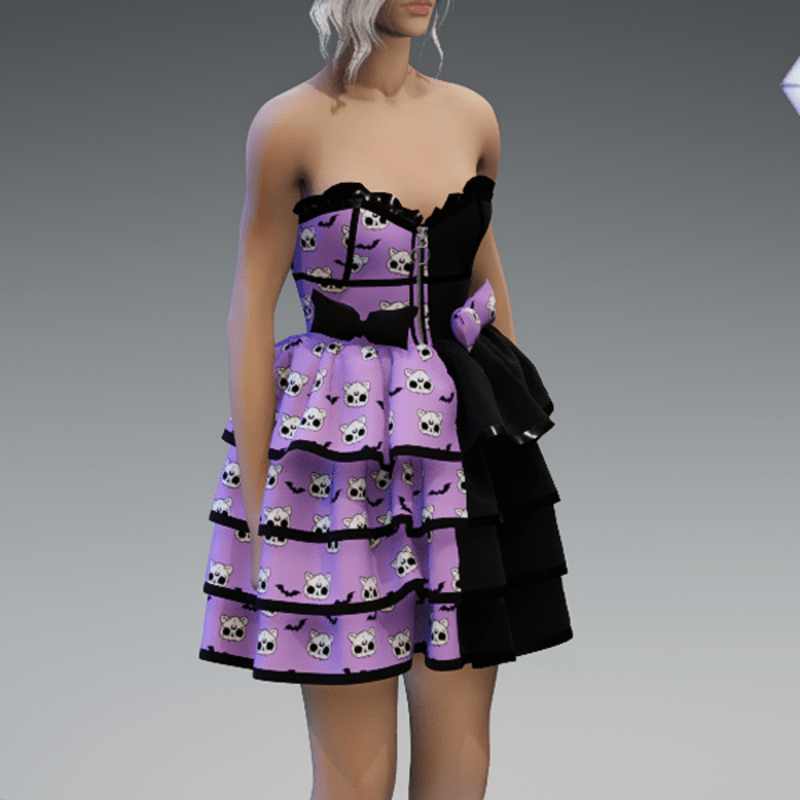 Lolita Dress V2 'Deadcats & Bats' with Bows in Lilac