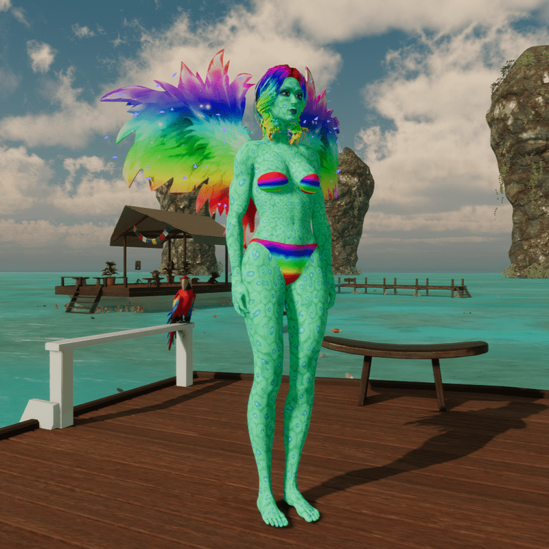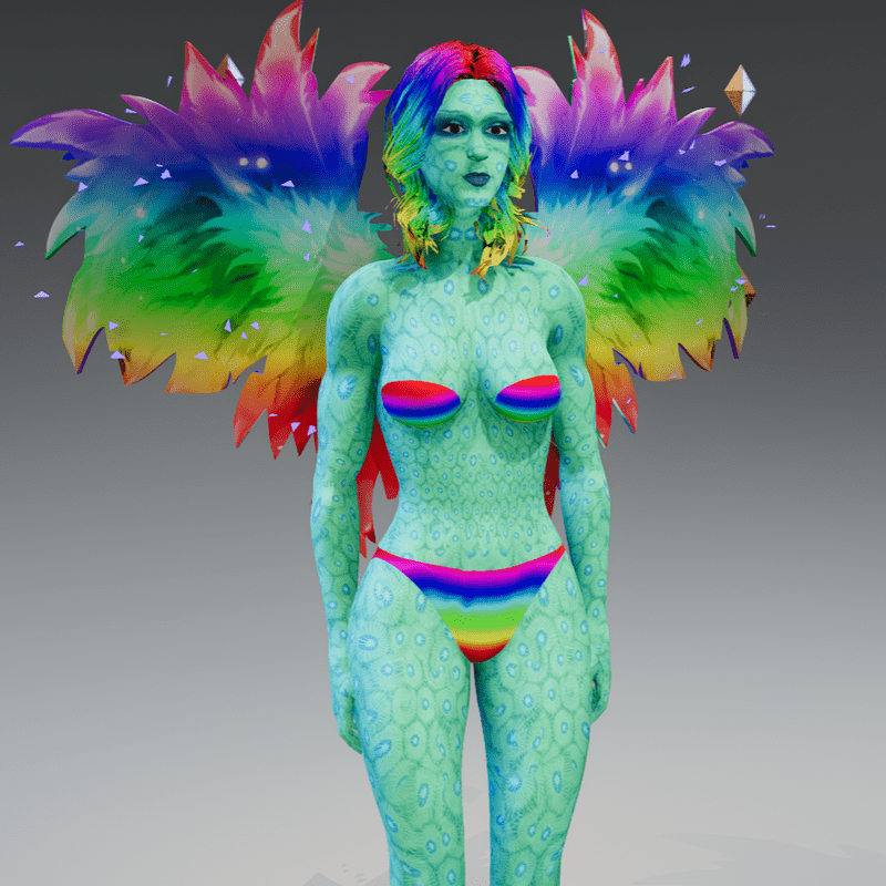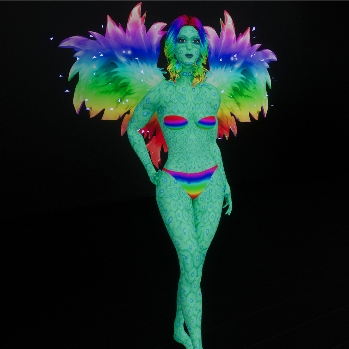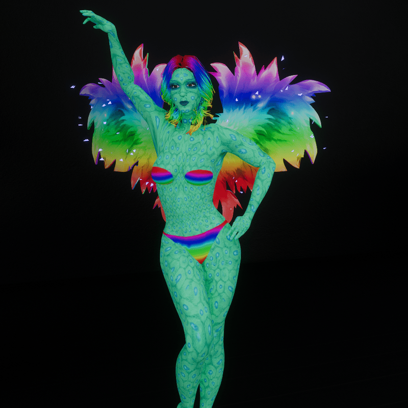 Watch in Action here:https://gyazo.com/b67f9ffead56f2e1609bf5a81a444720 Complete Pride Avatar has emote in here face and is perfectly rigged so hands/mouth/eyes, etc works good Its is a Customizable Pretty Avatar who can wear Clothes, accessoires. Hair and Wings (with emissive detail) are included. Emote can also be applied so you can Dance. She got beautiful eyes, Sexy eyeshadow, glossy lipstick. Just see my items in my experience: https://atlas.sansar.com/experiences/acpixl/acpixl-animation-avatar-store