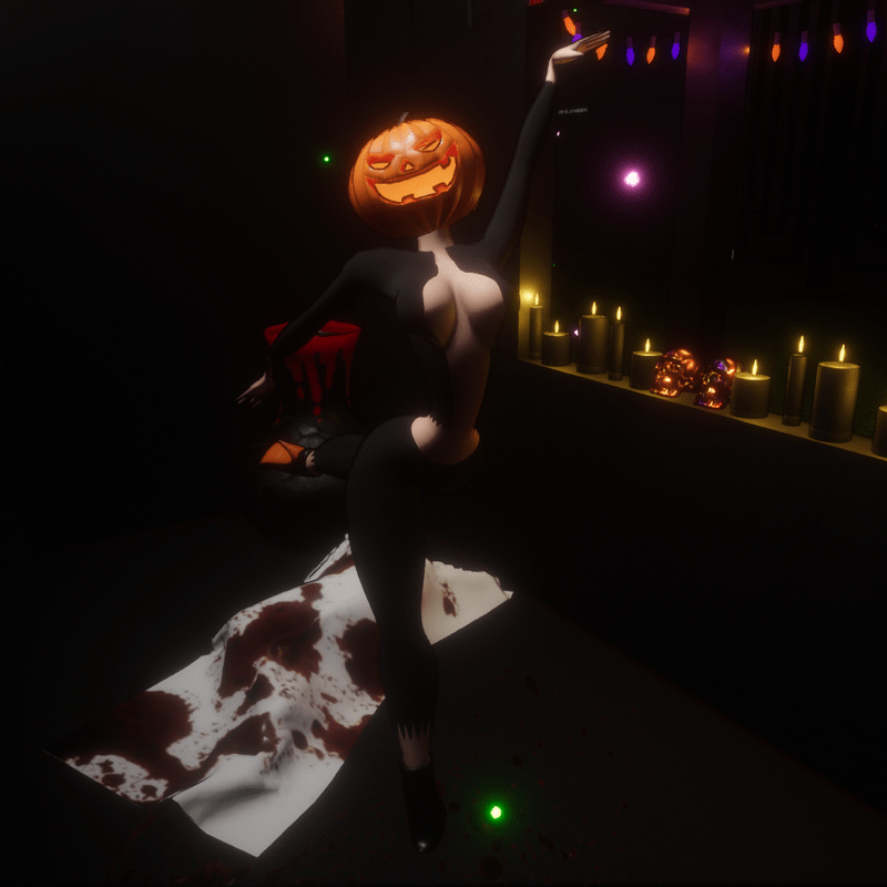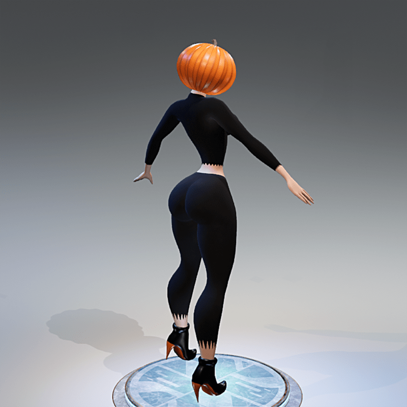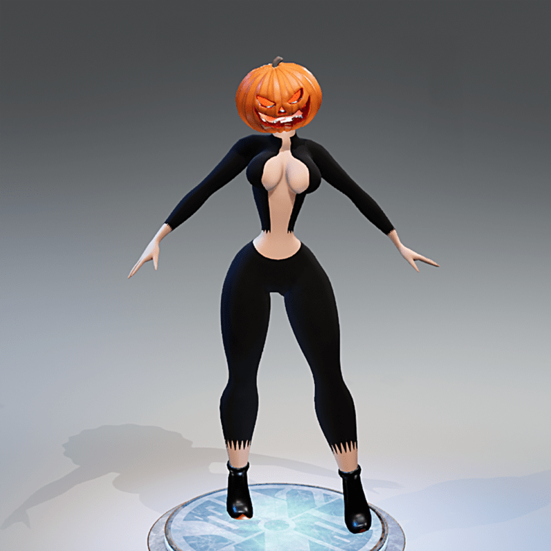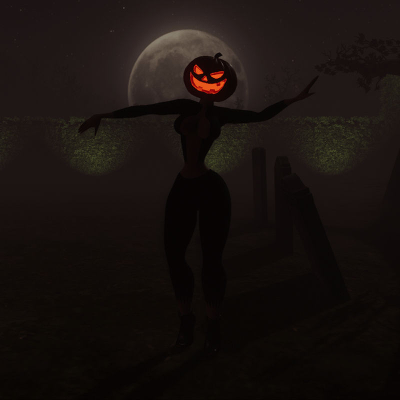 Avatar Halloween pumpkin woman. Have fun with this avatar of a woman with a pumpkin head, ideal for halloween party. The inside of the pumpkin, mouth, nose and eyes have a soft emissive animation. Please rate this item