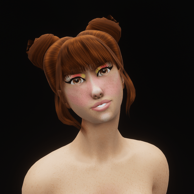 Heavenly is from Ireland. She is a wild fire and loves to travel. She is ginger, hence why she has freckles and ginger eyebrows. Gorgeous hazel eyes, sexy curves, a cute small nose. Great texturing. HAIRS, DRESS NOT MINE, SWORDS AND HEADPHONES ARE MINE AND MADE COMPLETELY BY ME (ITEMS NOT INCLUDED) Avatar made by me.