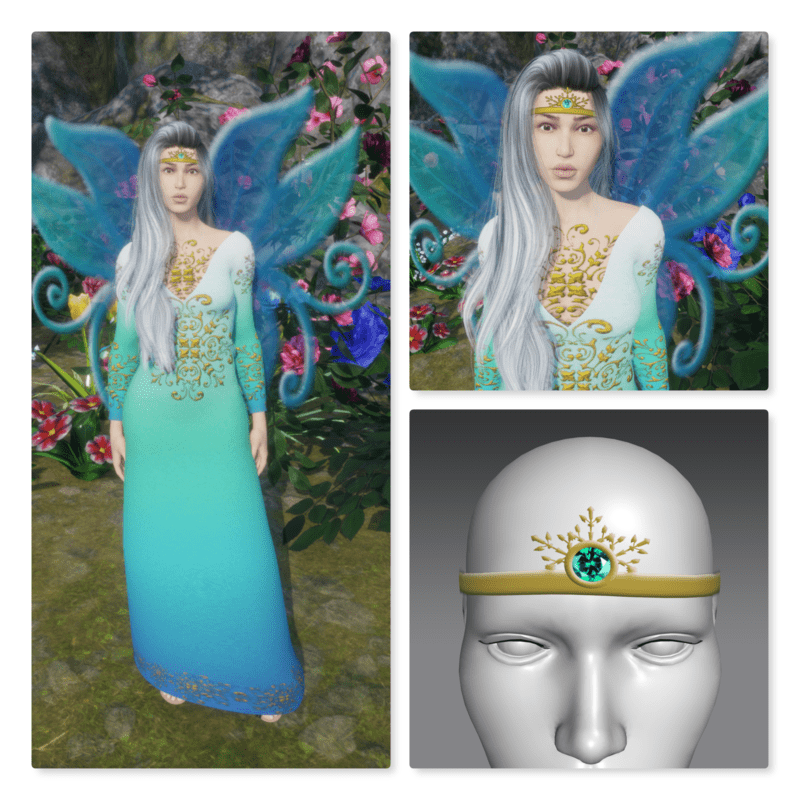 Apatite is a very common mineral, but transparent gemstone-quality blue-green apatite is extremely rare even in the fairy lands. It is a stone of inspiration, wisdom and communication. (Attaches at glasses slot.) Fairy, Fae, Fae, gemstone, cirlet, gold, apatite, fantasy