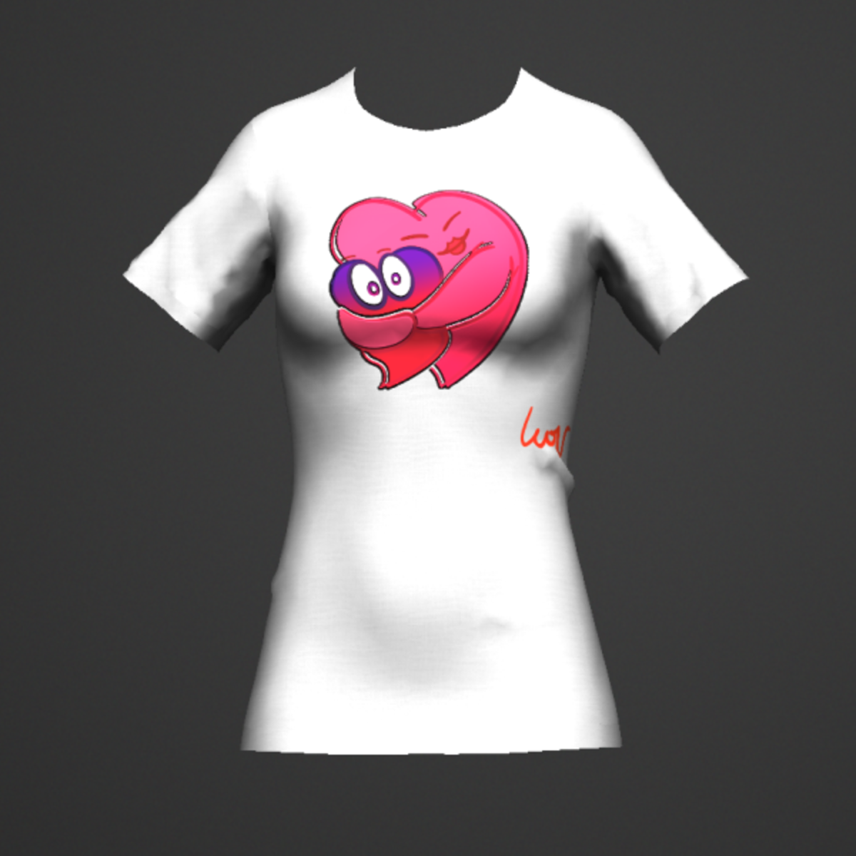 White comical valentines t-shirt of a large heart squeezing her love a bit too much a Luovanime creation