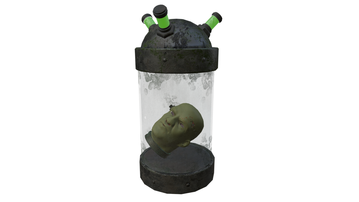 Frankenstein head in a jar. Just creepy!!
