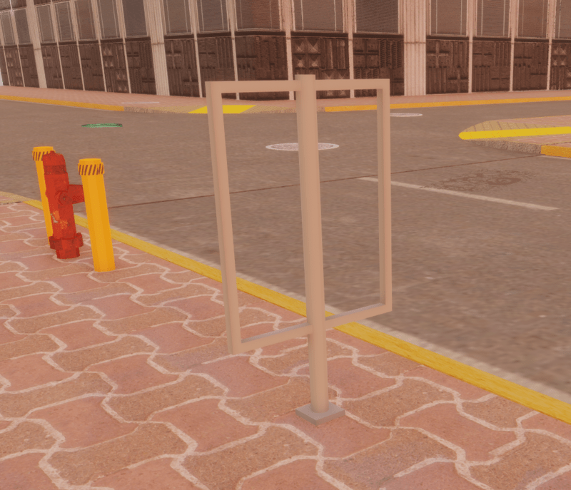 Add some details to your scenes! This bicycle rake can also be used as a theft scanner by a store entrance, a sign holder, or for crowd management divider. This object was uploaded with the default Sansar materials so you can change it how you want or add decals. If you want a particular material or collision mesh, just let me know. City Downtown Source: Voogu LLC