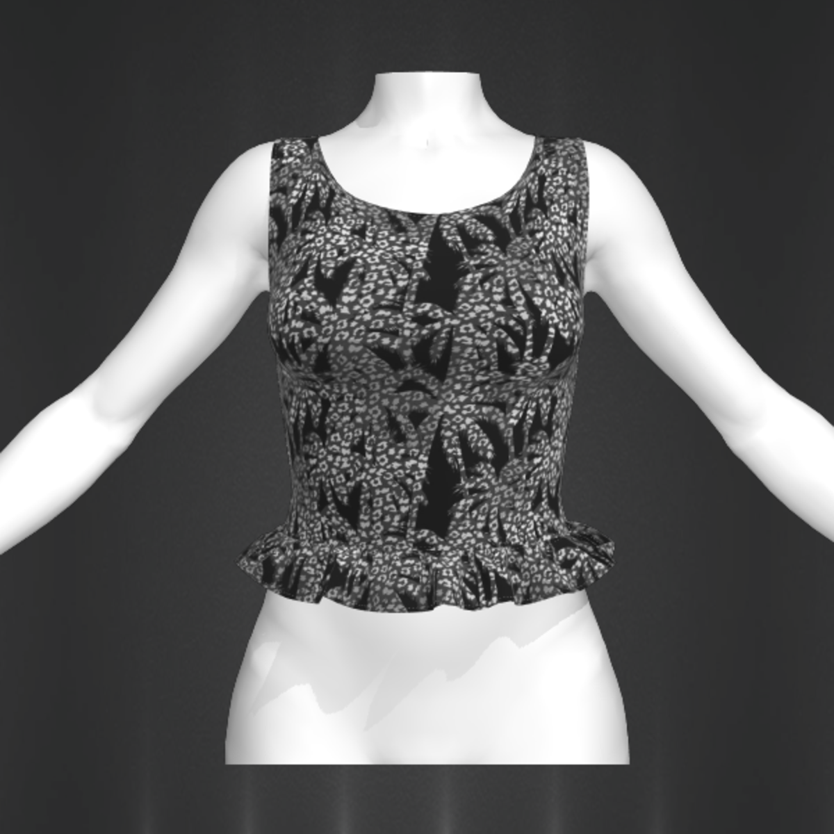 Top frill exotic fabric black