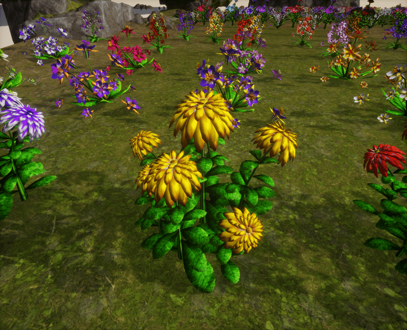 A group of 7 dahlia plants for your lovely lands and gardens. There is no collision on this mesh so you can walk through it. I have many colors. Please note that all my flowers are 100% detailed mesh. Each petal, pollen, stalk and leaf is made by hand and placed by hand. All the textures are also made by me. Enjoy!
