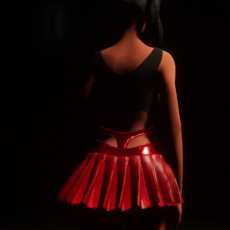 A sassy short pleated skirt in Red with emissive trimmings. Designed in Marvelous Designer by B.Rene Gade Fashions and Accessories.