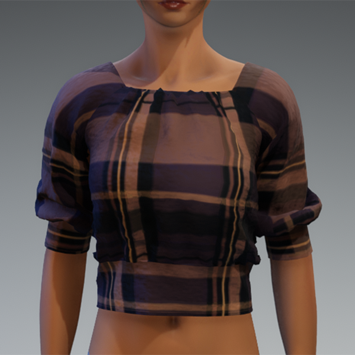 Plaid Top with a little shirring near the bottom.