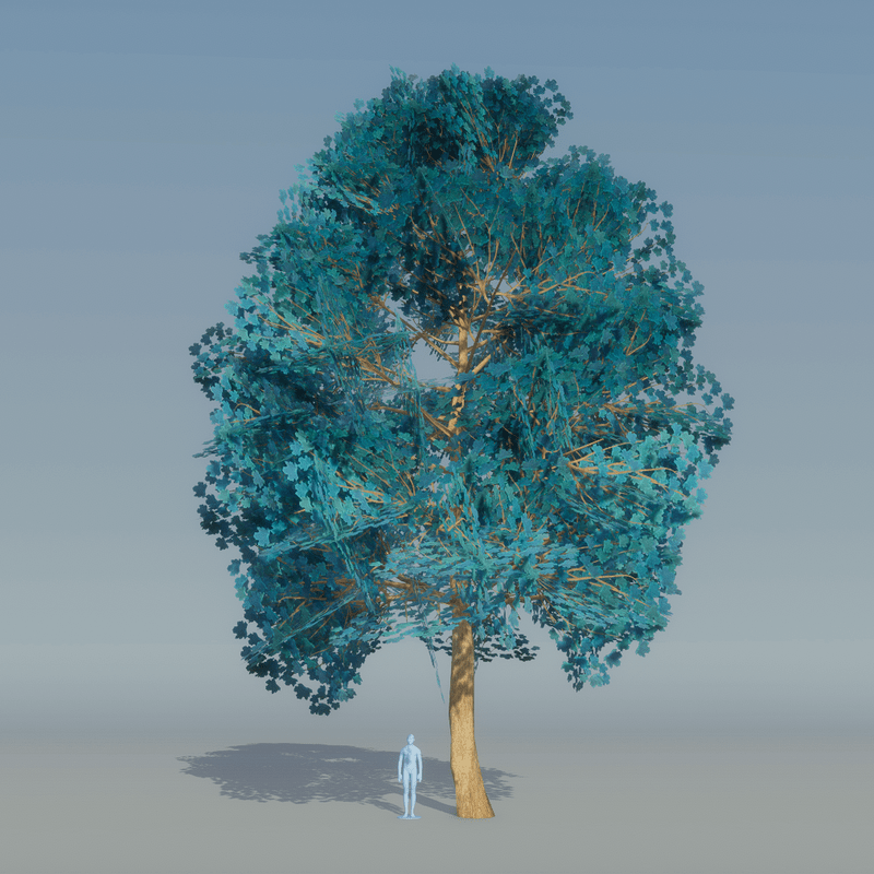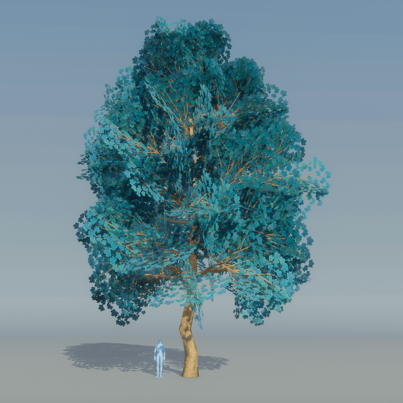 Blue Maple Tree variation 5 2913 Triangles Trunk collision You can see it at The Worlds factory: https://atlas.sansar.com/experiences/lluisindigo/worlds-factory#Maple_Blue