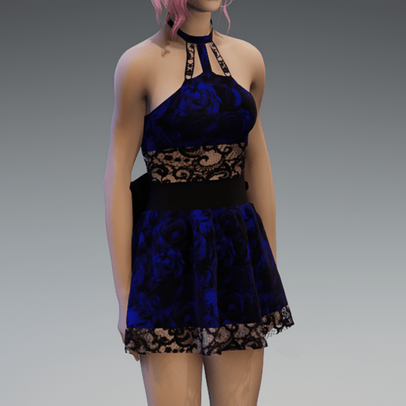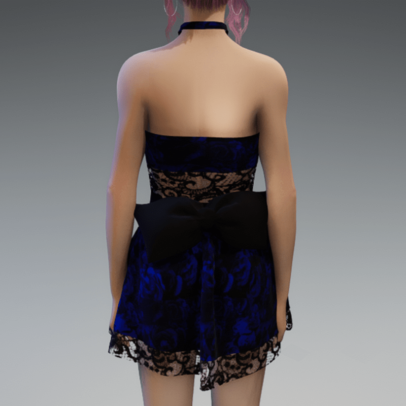 Blue Roses3 Cute Partydress with a Bow and Lace