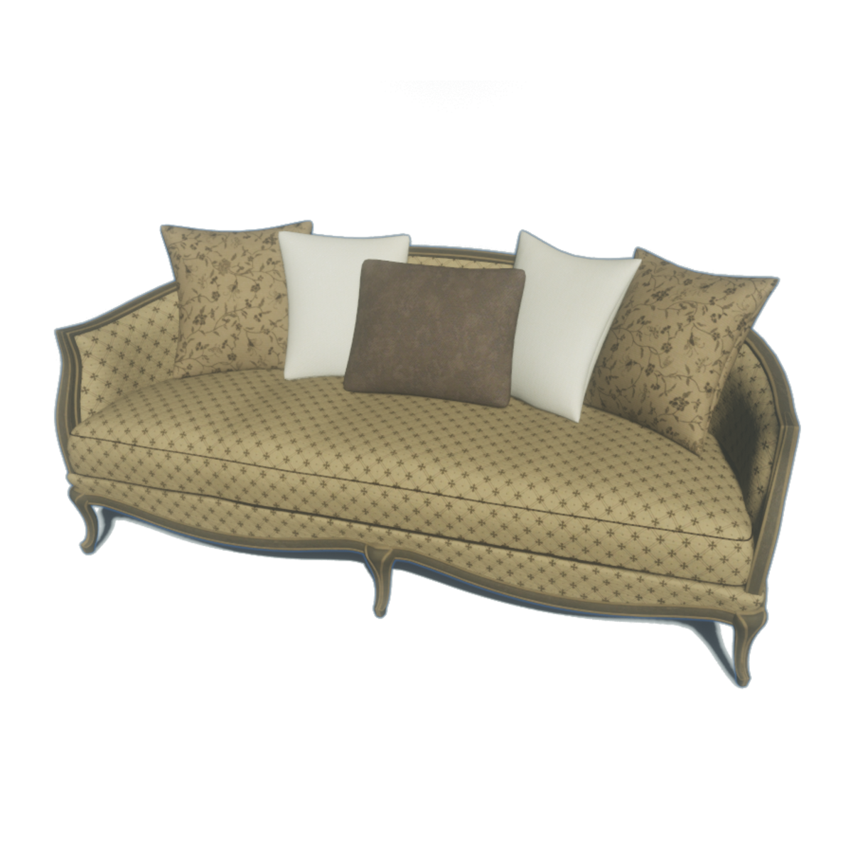 Detailed Victorian sofa with 5 pillows .