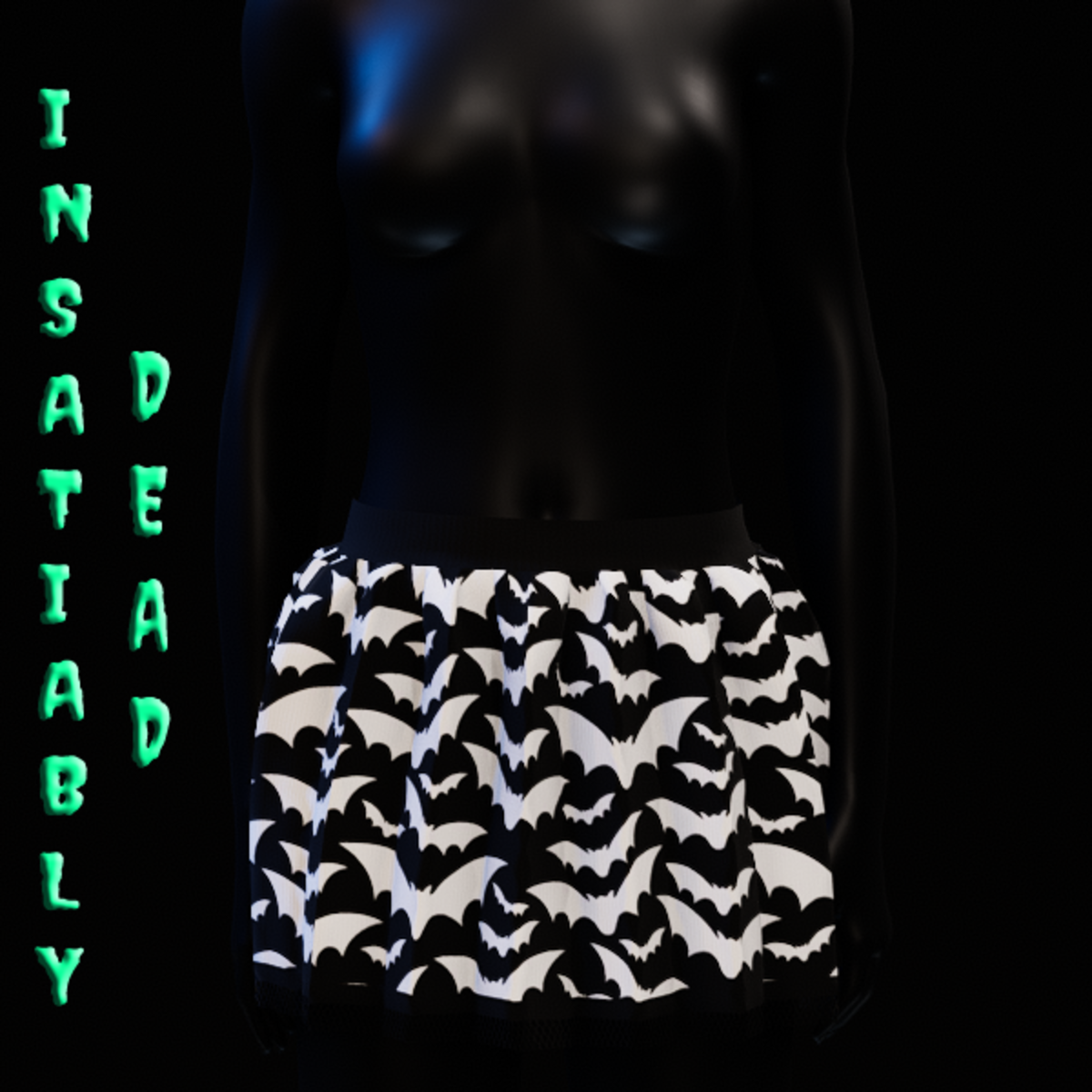 HALLOWEEN BAT PLEATED SKIRT [WHITE]. CREATED IN MARVELOUS DESIGNER WITH AVATAR 2.0. ADJUSTMENT MAY BE REQUIRED! FITTING INSTRUCTIONS CAN BE FOUND BY GOING TO THE LINK BELOW. https://help.sansar.com/hc/en-us/articles/115005693363-Fitting-Marvelous-Designer-clothing-to-your-avatar PLEASE RATE AFTER BUYING! IF ANY ISSUES OCCUR PLEASE CONTACT TEAGAN BROKKEN FOR ASSISTANCE. THANK YOU! <3 <3 GET INSATIABLY DEAD <3