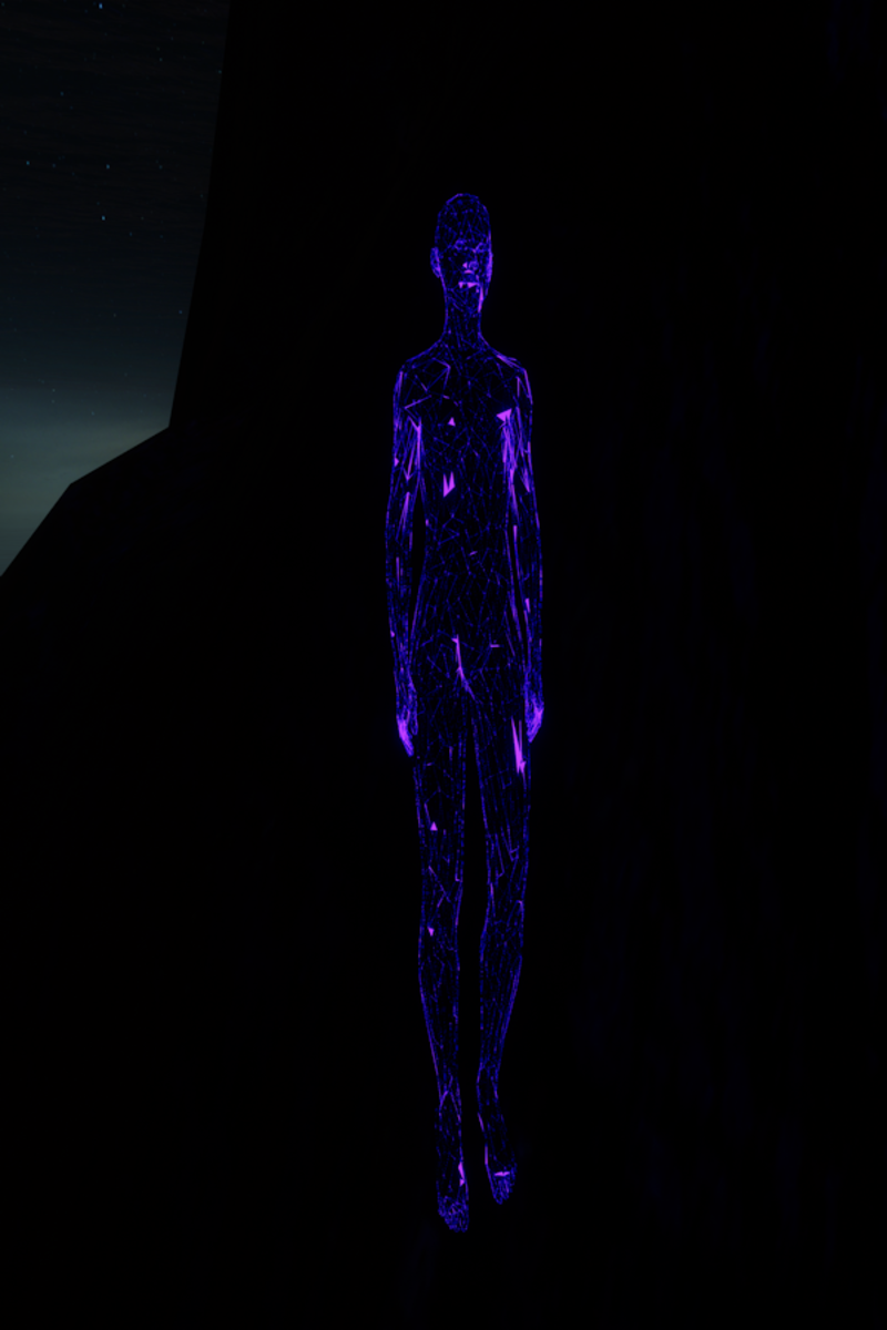 Glow in the dark mesh girl avatar in blue, To see other items world visit my store https://atlas.sansar.com/experiences/timeymaster-3376/timey-master-s-store