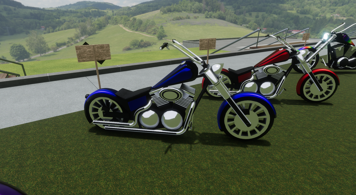Blue Motorcycle Avatar Attachment. keep you eyes pealed for "M3N4C3 Bike Emotes" Come and check it out in person at https://atlas.sansar.com/experiences/djm3n4c3-9174/dj-s-garage-sale
