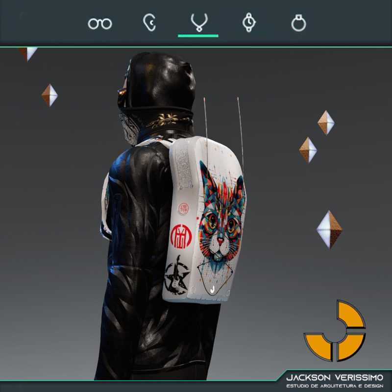 BackPack Series Minimal is a new design of backpacks by Jack Verissimo. Unisex Acessory. Just a little adjustments to fit in some cases . The design is based on avatar 2.0 of Sansar. Discreet backpack, Nice Texture and a exclusive Art.