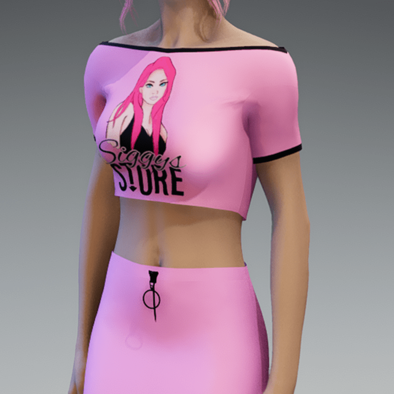 This pastel pink and black crop top comes with a 'siggys store' logo which includes a drawing of mine. You can also use this free version if you want to know how my crop tops will look like on your avatar. If you're looking for the skirt - find it in my store, too! Enjoy!