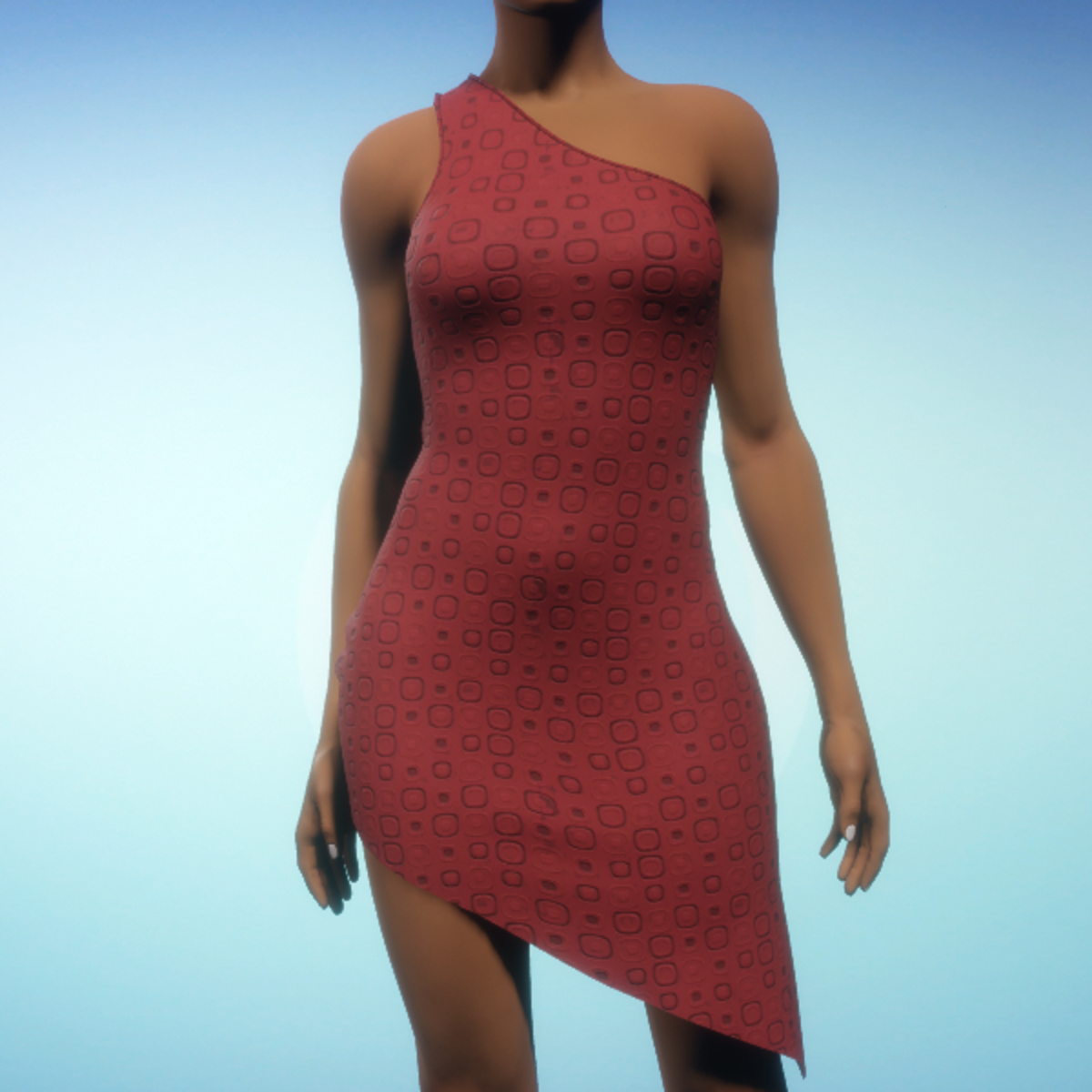 A one-shouldered, form-fitting asymmetric dress that is cut higher on one leg. By Sweet Distractions