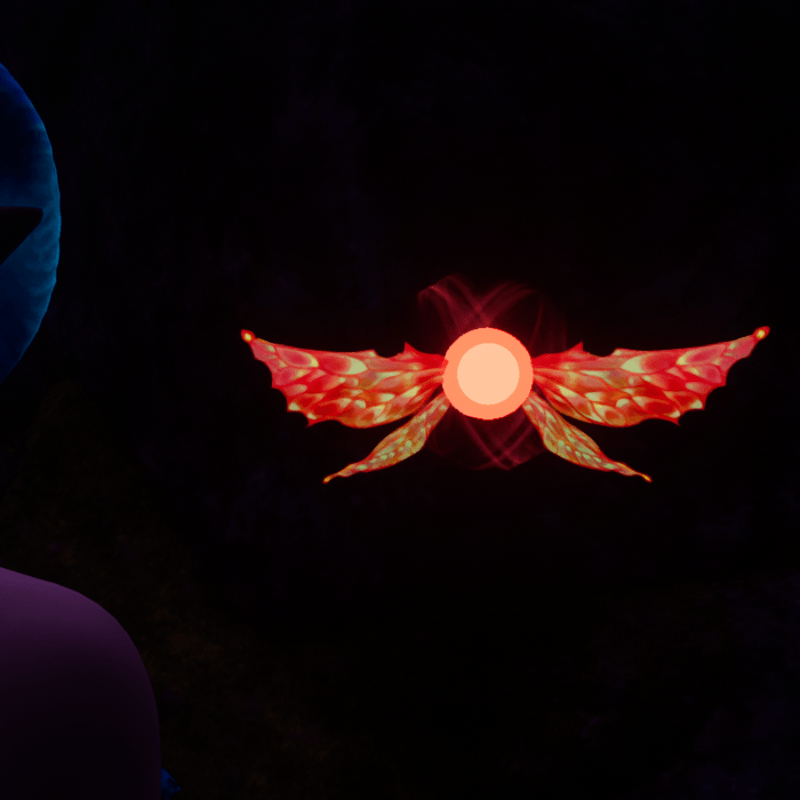 Animated glowing red pixie pet; Worn in the Glasses Slot Animated wings and magic particles, see example gif: https://gyazo.com/4644a35b16a119e012e855af742db08d Wearable with other slot variants and FULLY TRANSFORMABLE! Textures hand drawn by NovaVoidSpirit