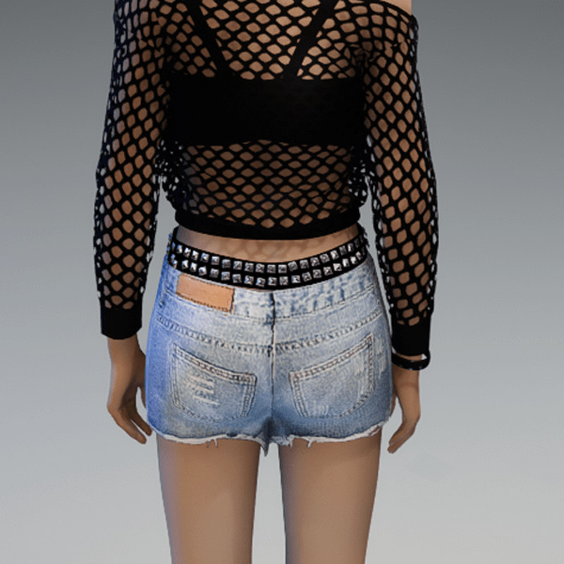 Ripped Short Denim Pants with Rivets Belt