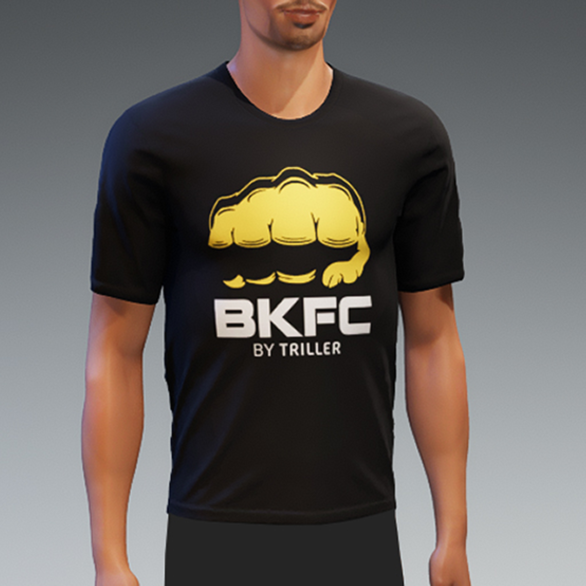Black, short sleeve T-shirt with a BKFC logo