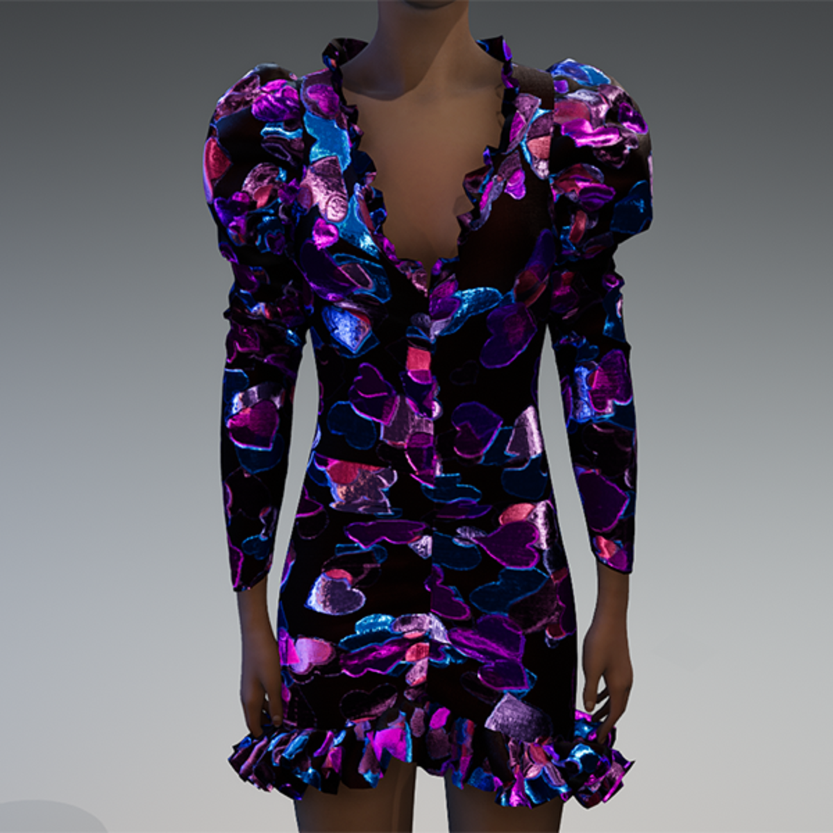 Metallic hearts brocade ruched puff sleeve top