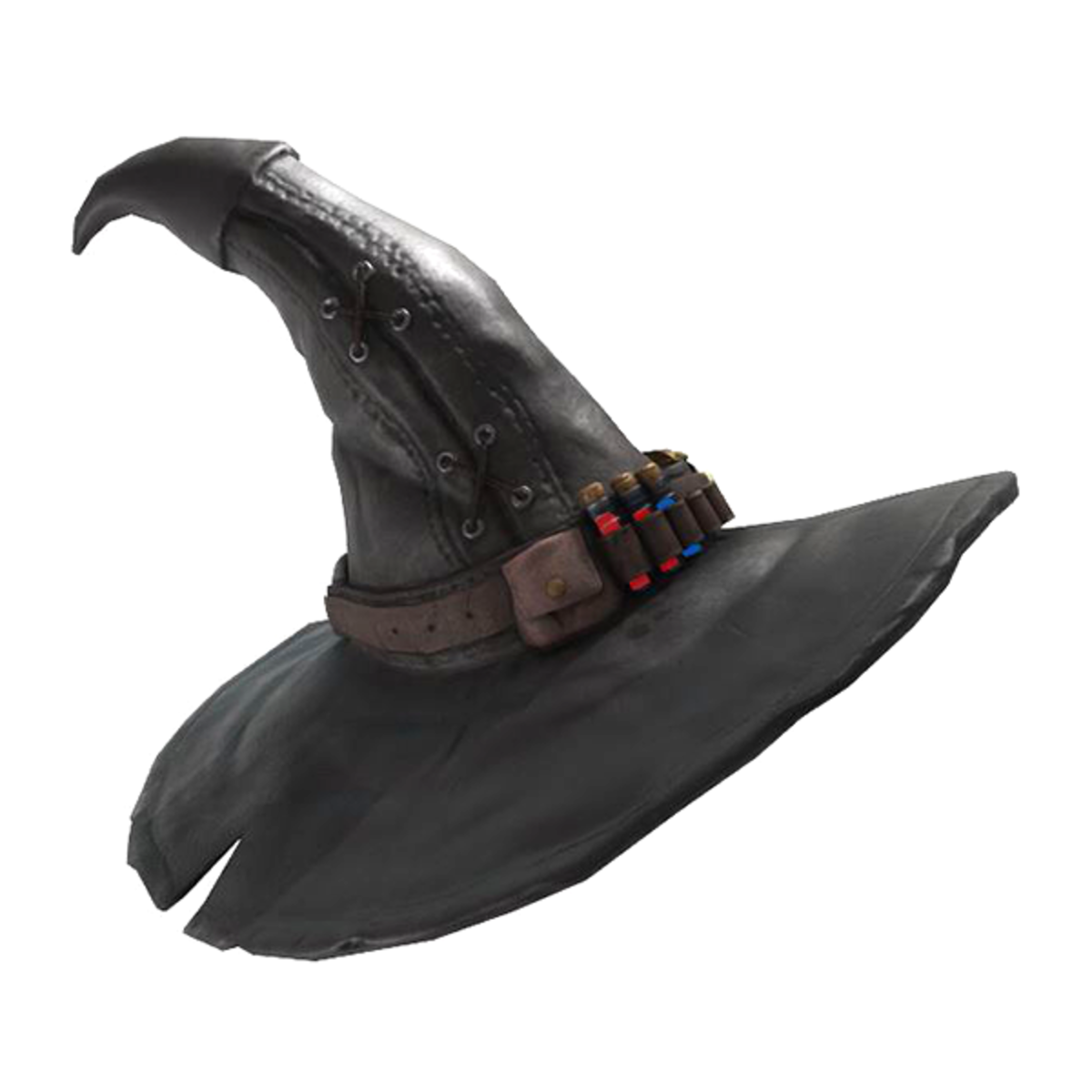 Found in Accessories as Glasses. Adjustable on avatar in Lookbook. Black Leather Version. Hand stitched leather body and belt, fastened with a golden buckle with someones teeth melted in. 3 easy to access potions filled with mysterious liquids. A leather pouch filled with a sparkling white powder. Metal ring loop segmenting the belt. Corner of the hat was cut by something sharp! [Story] There's a story about a mysterious lady who lived just up the hill in a creaky old building no one dared to go near. The villagers would complain about strange bright lights and odd zappy noises coming from the house whenever it would begin to rain. One Halloween night a young brave trickatreater decided to go up the hill and knock on the door. After the third knock, the door creaked open and on the floor lay a mysterious looking hat. The house was barren and quiet so the brave person assumed no one lived there anymore and picked up the hat.