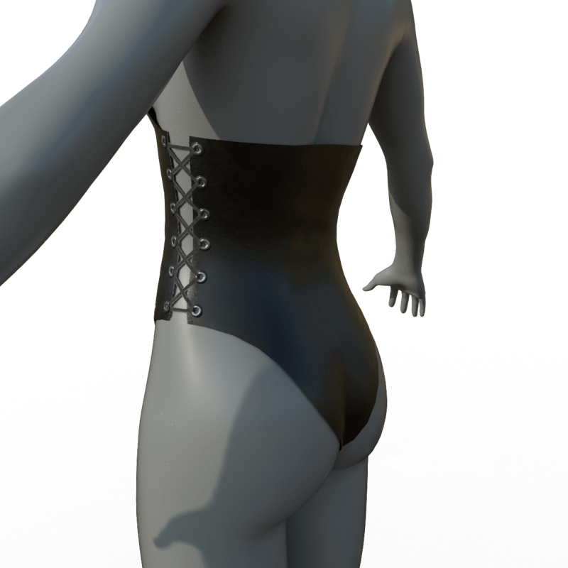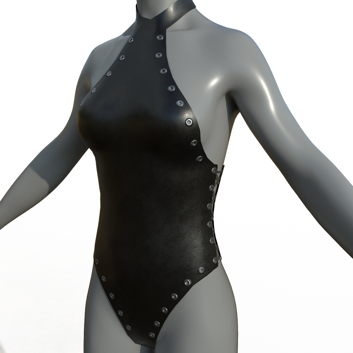 Black leather bathing suit, metal studs along side with lace up sides. fits perfects for all avatars. Marvellously designed and Substance painted. please enjoy responsibly, and as always thanks for downloading