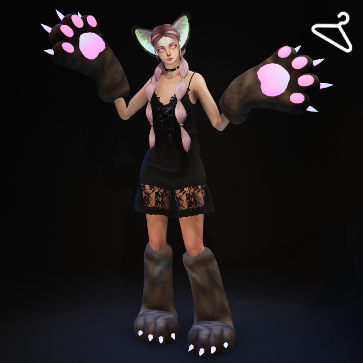 A combination of the cat paw gloves and boots in one clothing item. Fitted for both male and female framed avatars with flat default compatible feet. Scrolling animated glowing rainbow on the toe beans and claws, example Gifs: https://gyazo.com/d531d4001886f2f0ebb169111d185b39 https://gyazo.com/39c368445dfe0d5b97454dbd8f50aeab A rigged clothing item so cannot be re-sized or moved. Other colours available on store, we also sell matching cat ears and tails if you want the complete neko look. Make sure to set your inventory to 'Show all clothing' if the cat paws do not show up immediately for you in the clothing tab. (See the example picture on this listing for reference.) Contact "TheNick-1981" through Sansar or Sansar discord if you need re-rigging, a custom design or if there is a problem etc. Version 2.0: Minor texture optimizations and tweaks.