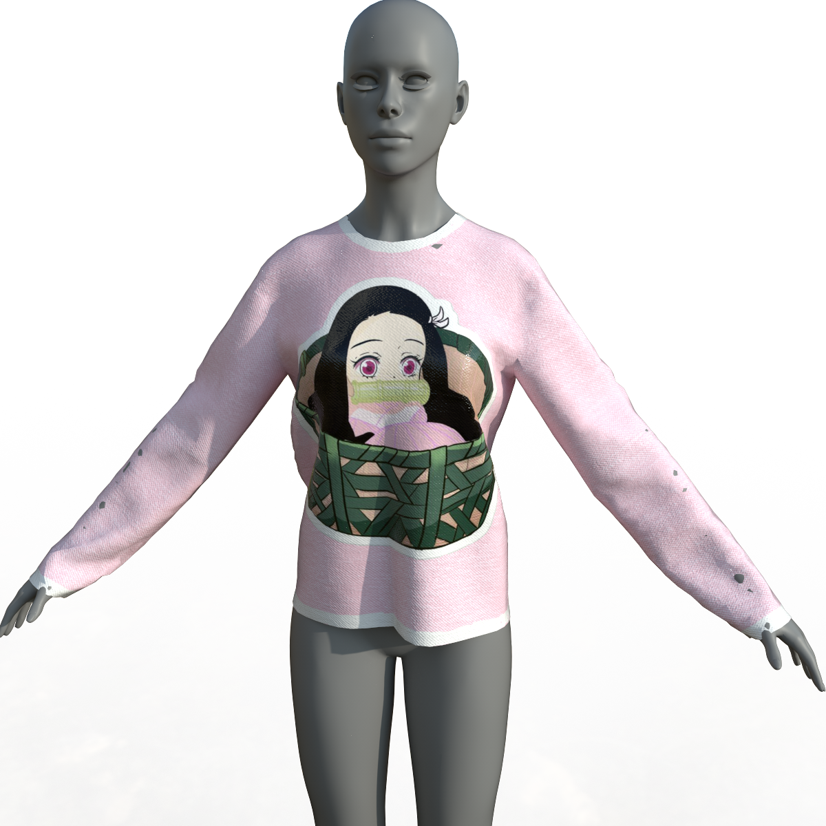 A cozy and baggy sweater featuring smol bean Nezuko.