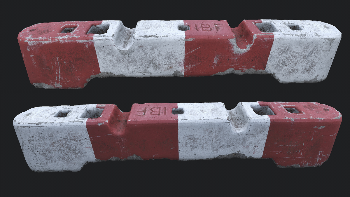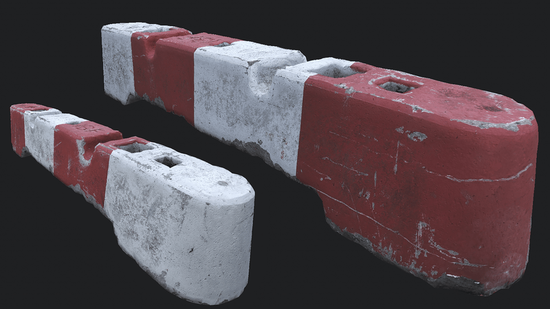 Old Concrete Barricade PBR Very Detailed Old Concrete Barricade Painted in White and Red, PBR Textures, perfect for Exterior Landscape Decoration in any game genre This model was created with Photogrammetry, so it doesnt get more real than this :)