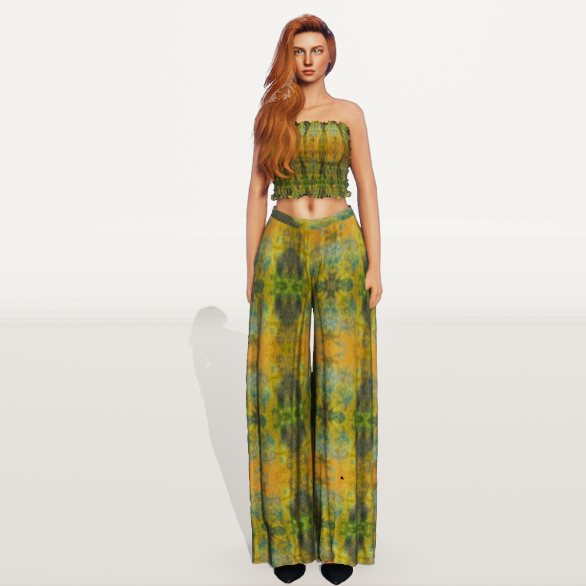 Batik bohemian fabric palazzo pants. Items sold separately. This ad is for the palazzo pants only. Made in Marvelous Designer and can be adjusted to fit most avatars. Pictured with Alina and AV2.0 Check out my store for a variety of batik fabrics choices and the matching shirred tube top Demo located here: https://store.sansar.com/listings/64915d5e-4b9f-487d-a326-ec84ae14e1a6/demo---palazzo-pants