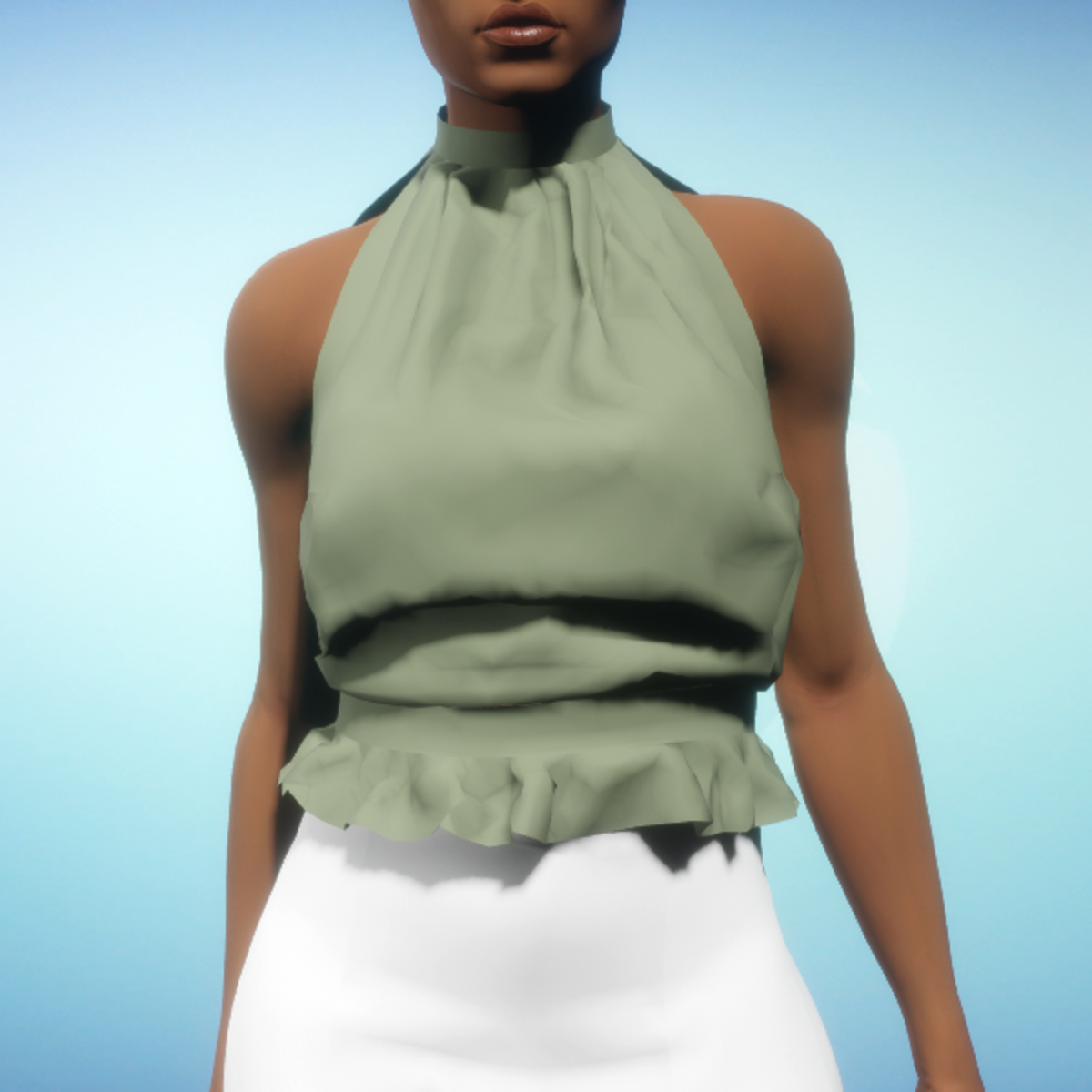 Elegant sleeveless blouse with a high neck and waist ruffle. By Sweet Distractions