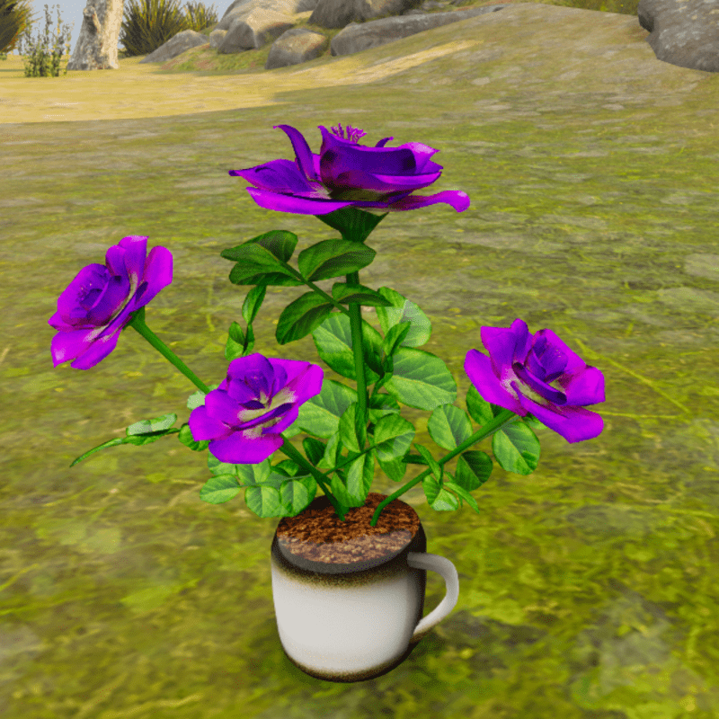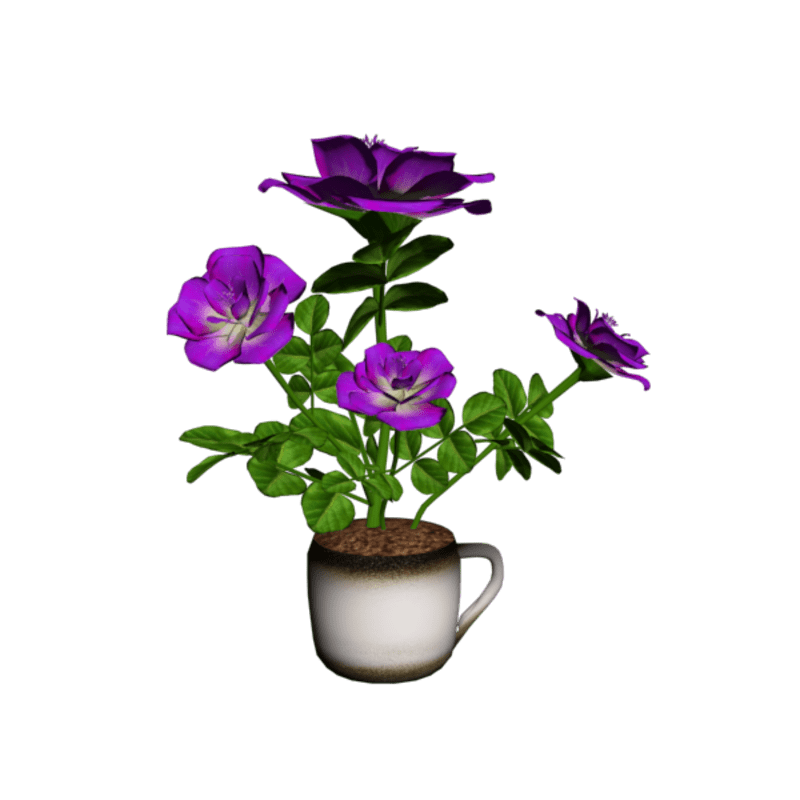 Roses in Coffee Cup - Purple and White Mix. Bright color pics are how they look in Sansar. You can view them here: https://atlas.sansar.com/experiences/lovedwarrior/lovedwarrior-s-flowers-in-vase