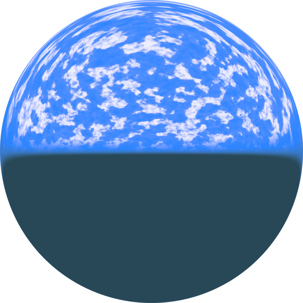 Medium clouds on a light background of higher clouds and blue sky. No sun, a directional light is recommended. Horizon fades out to dark blue fog.