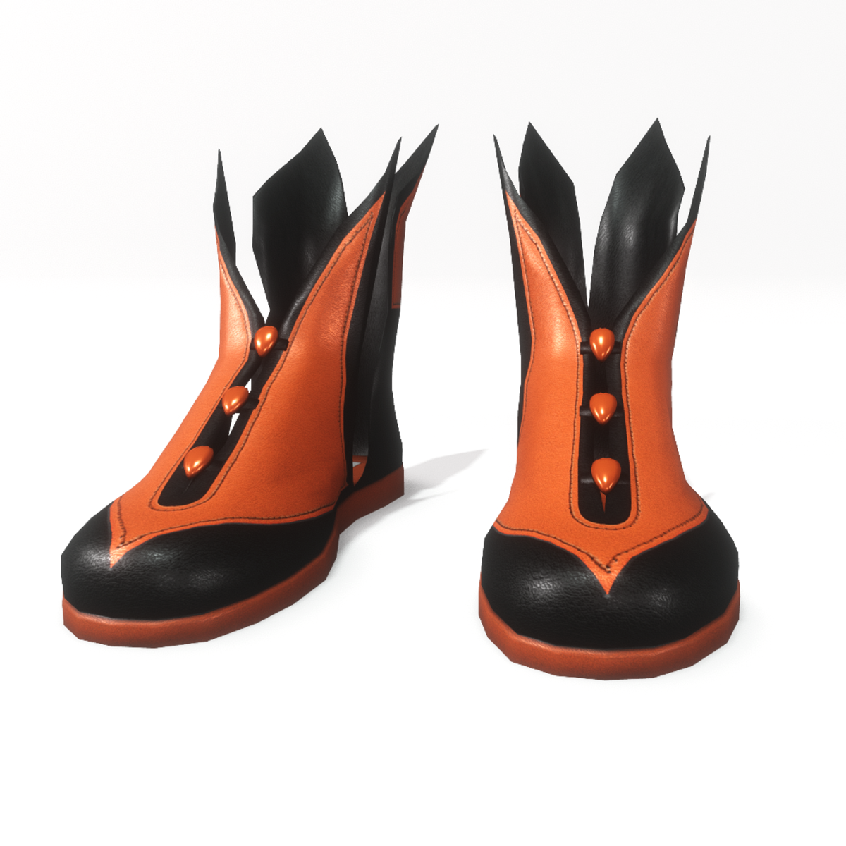 A unique pair of male shoes in black and orange colour with leather "wings" and pearl buttons. Ideal for the Halloween, costume parties or an eccentric appearance. Get the free demo item to check fit and style before purchasing here: https://store.sansar.com/listings/f3e19de9-9159-4af8-89f9-99edb5c59545/warlock---wiccan-shoes-for-male-avatar-2---demo