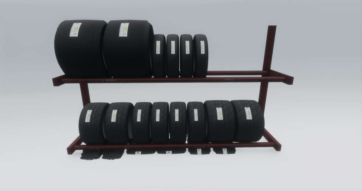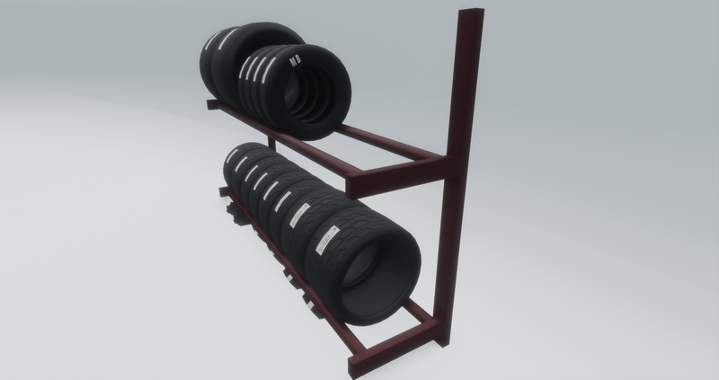 Tire rack for your garage or dealership. Textured in Substance Painter with property change permissions. An in world version can be seen at Kustom Klassics