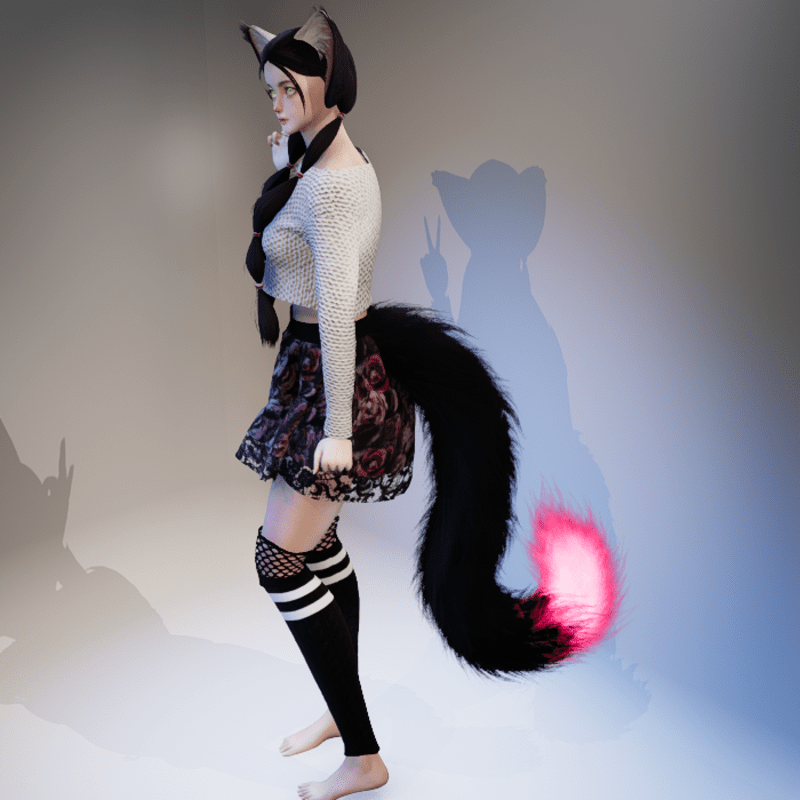 Big luxurious Flooofy Cat tail. Animated Fire Tips Edition! See example Gif for what the animation looks like in game: https://gyazo.com/23bf761fc0175765546819fc3911805f The necklace slot version so it can be rotated and scaled and is Fully Transformable. (If you need to wear a necklace with the tail, a clothing slot version is also available on store and is not adjustable but does have better rigging) Make sure to set your inventory to 'Show all accessories' if the Tail does not show up immediately for you in the accessories tab. (See the example picture on this listing for reference.) Will fit both Female and Male framed avatars. The rigging works well enough on the necklace slot version but does have minor movement inconsistencies with the rest of the body unfortunately (waiting for a tail slot attachment point) Contact "TheNick-1981" through Sansar or Sansar discord if you need re-rigging, a custom design or if there is a problem etc.